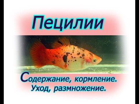 Пецилия очень популярная аквариумная рыбка, которую очень любят опытные аквариумисты и которую смело можно порекомендовать начинающему аквариумисту. Из за простоты содержания, своего мирного характера и простоте размножения пецилия очень популярна. Также, рыбки пецилии имеют очень разнообразную, насыщенную цветовую гамму поэтому они очень красиво смотрятся в аквариуме. ПЕЦИЛИЯ| уход и разведение Описание Пецилия родина рыбки – Мексика, центральная Америка, где они живут в реках бассейна Атлантического океана. Рыбка пецилия относится к отряду живородящих карпозубых. Внешний вид аквариумной рыбки пецилия Аквариумные рыбки. Пецилия далматинец. Мраморная. Пецилия растет небольшая, от 3 до 5 см. Причем самка больше за самца. Самец всегда меньше за самку. Тело пецилии ромбообразное, немного сжатое с боков и долгое. Отличить самца от самки можно по так званому оноподию (анальный плавничок, завернутый в трубочку, орган для размножения), а самка имеет закругленный анальный плавник.